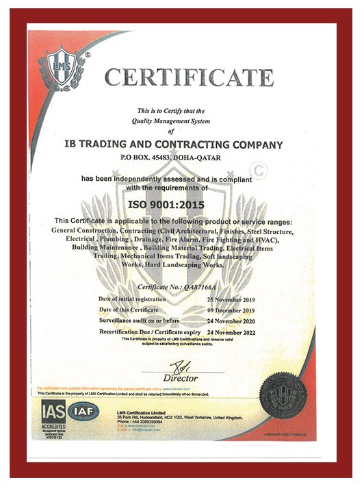 IB TRADING AND CONTRACTING Company established In 2014 under Mr. Ali Saeed A Al Kuwari. We became a fast-growing company in Qatar. We provide excellent quality of work by ensuring our client’s requirements and expectations. In IB Trading and Contracting We believe in professionalism and respect, we maintain our excellent work to provide our client’s satisfaction. We deliver the business that fits our client’s requirements and gives the results that they want. We help you to reach your dreams by meeting your business needs. To be able to be an excellent company in Qatar and to build strong businesses and create a stronger relationship with our clients.