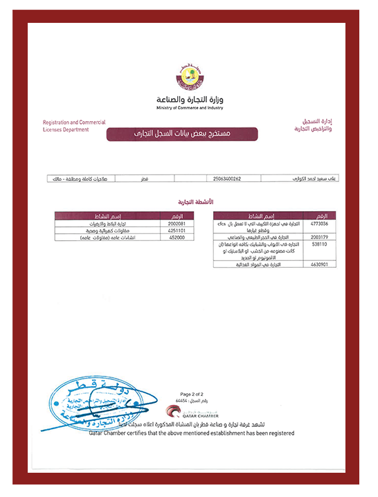 IB TRADING AND CONTRACTING Company established In 2014 under Mr. Ali Saeed A Al Kuwari. We became a fast-growing company in Qatar. We provide excellent quality of work by ensuring our client’s requirements and expectations. In IB Trading and Contracting We believe in professionalism and respect, we maintain our excellent work to provide our client’s satisfaction. We deliver the business that fits our client’s requirements and gives the results that they want. We help you to reach your dreams by meeting your business needs. To be able to be an excellent company in Qatar and to build strong businesses and create a stronger relationship with our clients.